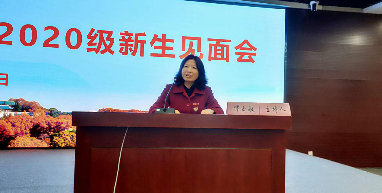 李楠老师紧接着发表讲话。她感慨了抗疫大战背景下我们相聚珞珈的来之不易,回忆起自己37年的珞珈生涯,谈到武大校训对自己的激励。面对新同学,李老师鼓励同学们成为德智体美劳全面发展的学生——坚定理想信念,加强品德修养,肩负起民族复兴的历史重任;珍惜学习时光,扩展视野,术业专攻的同时博采众长;树立健康的身心理念,锻炼身体,锤炼意志;加强美育,享受艺术的熏陶,注重个人形象;树立劳动最光荣的理念,参与多种智力和体力劳动。最后,李楠老师祝愿同学们好好学习,全面发展,早日成为德智体美劳全面发展的社会主义建设者和接班人。