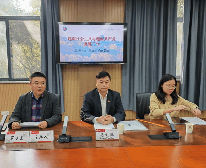 11月23日,越共中央理论委员会委员、越南社科院党组成员、越南社会科学翰林院原副院长、哲学所所长范文德做客yl7703永利官网,带来题为《越南社会主义与越南共产党党建工作》的讲座。讲座由yl7703永利官网党委书记罗永宽主持,金伟教授、李美幸老师、余杰老师以及部分院内外本科生、研究生参加了讲座.
