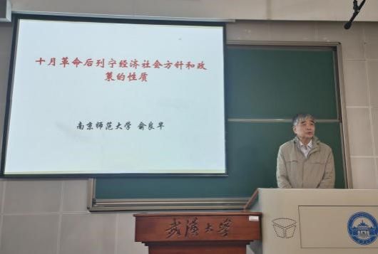 5月26日,南京师范大学公共管理学院博士生导师、中央“马工程”项目首席专家、中国国际共运史学会副会长、中国列宁思想研究会副会长俞良早教授为永利官网师生作题为“十月革命后列宁经济社会方针和政策的性质”的学术报告。讲座由yl7703永利官网副院长简繁主持,马克思主义基本理论系杨军教授、肖光恩教授、吴默闻副教授、李昀柏老师以及学院部分研究生、本科生到场聆听学习。