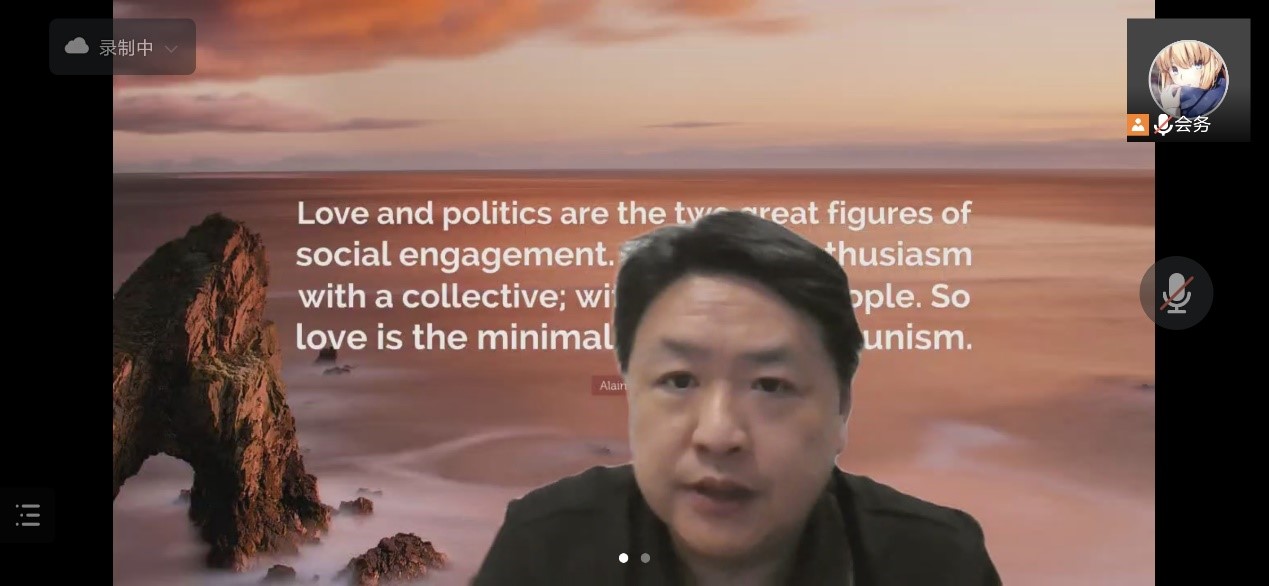 6月11日晚,“珞珈外马圆桌对话”第一期通过“腾讯会议”成功举办。“珞珈外马圆桌对话”是由yl7703永利官网国外马克思主义研究学科主办的系列对话活动,旨在特邀国内外专家就国外马克思主义的重要论题展开对话式研讨。本场对话特邀南京大学哲学系蓝江教授和西南大学yl7703永利官网黄其洪教授为对话嘉宾,以“巴迪欧VS拉吕埃勒:关于当代法国马克思主义交锋的对话”为题,就当代法国马克思主义理论家阿兰•巴迪欧和弗朗索瓦•拉吕埃勒之间的思想争论展开了对话式讨论。学院肖光恩教授、周金华副教授、李高荣副教授、哲学学院邢冰老师以及来自全国的师生近三百人参加了对话活动,对话由学院杨礼银教授主持。