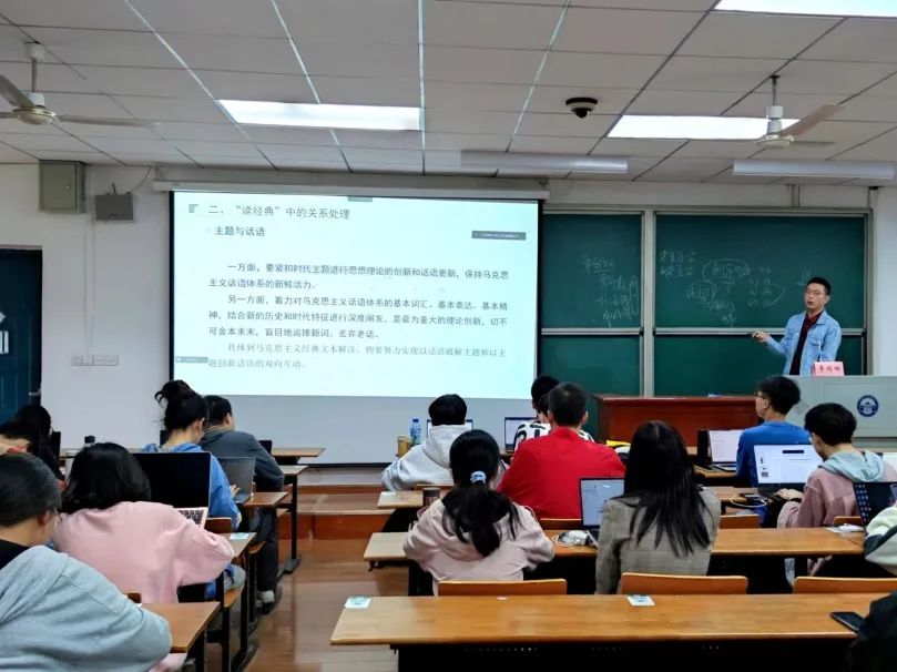 4月29日下午,“小马训练营”第一期活动在文理学部教一楼303教室顺利举办。本次活动由永利官网新进青年教师、南京大学哲学系博士李昀柏主讲,主题为“练好基本功——如何研读马克思主义经典著作”。讲座以线上线下同步的方式进行。马克思主义基本原理系杨军教授、周绍东教授、张萌博士、马克思主义理论专业2020级、2021级本科生及部分研究生到场学习。