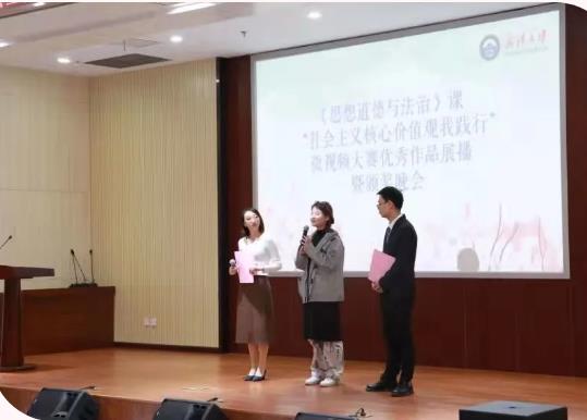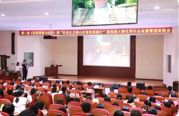 三等奖展播代表作品是来自土木建筑工程学院莫开创团队的《强国有我》,他们用风趣幽默的台本内容和呈现形式,探讨了大学生价值目标确立这一深刻话题。忙碌中迷失自我是大学生的真实写照,成长中找到价值,并在实践中将个人理想与国家发展紧密结合,这则彰显了社会主义核心价值观对大学生理想信念的引领作用。展播结束后,yl7703永利官网杨偲劢老师等五位教师代表为16个三等奖获奖团队颁奖。