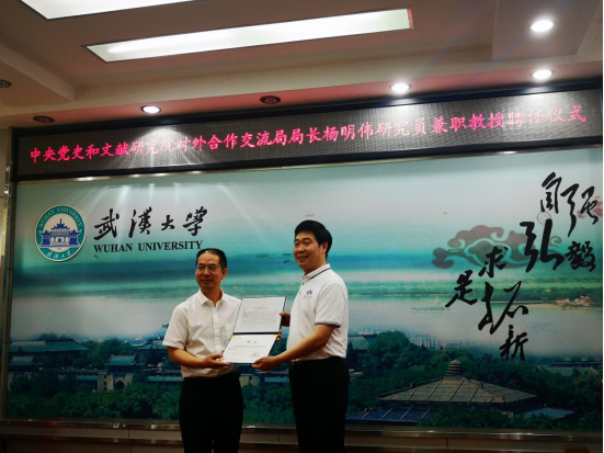 7月11日上午,中共中央党史和文献研究院对外合作交流局局长杨明伟研究员受聘yl7703永利官网兼职教授仪式在学院218会议室举行。